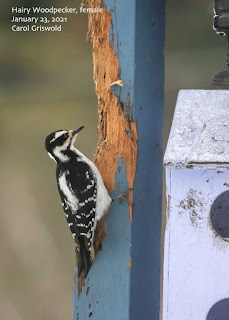 As for the BRAMBLING, he has been seen in the same neighborhood and often the same yard as before in the alley south of Marathon Drive, sometimes with the 5 or 6 RUSTY BLACKBIRDS and the single female RED-WINGED BLACKBIRD.